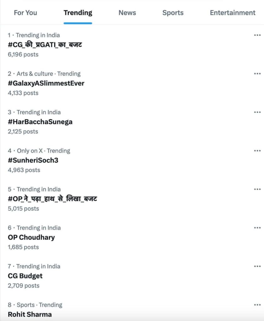 एक्स पर नंबर 1 ट्रेंड में रहा #CG_ की _ प्रGATI_ का _ बजट