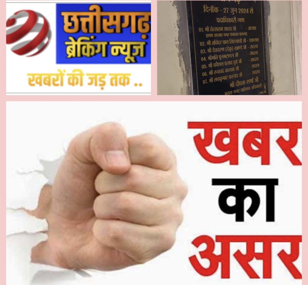 छत्तीसगढ़ ब्रेकिंग न्यूज़ के खबर का हुआ असर… नगर पंचायत पामगढ़ के सीएमओ ने शिलालेख में लगे अपने नाम का स्टीकर निकलवाया…
