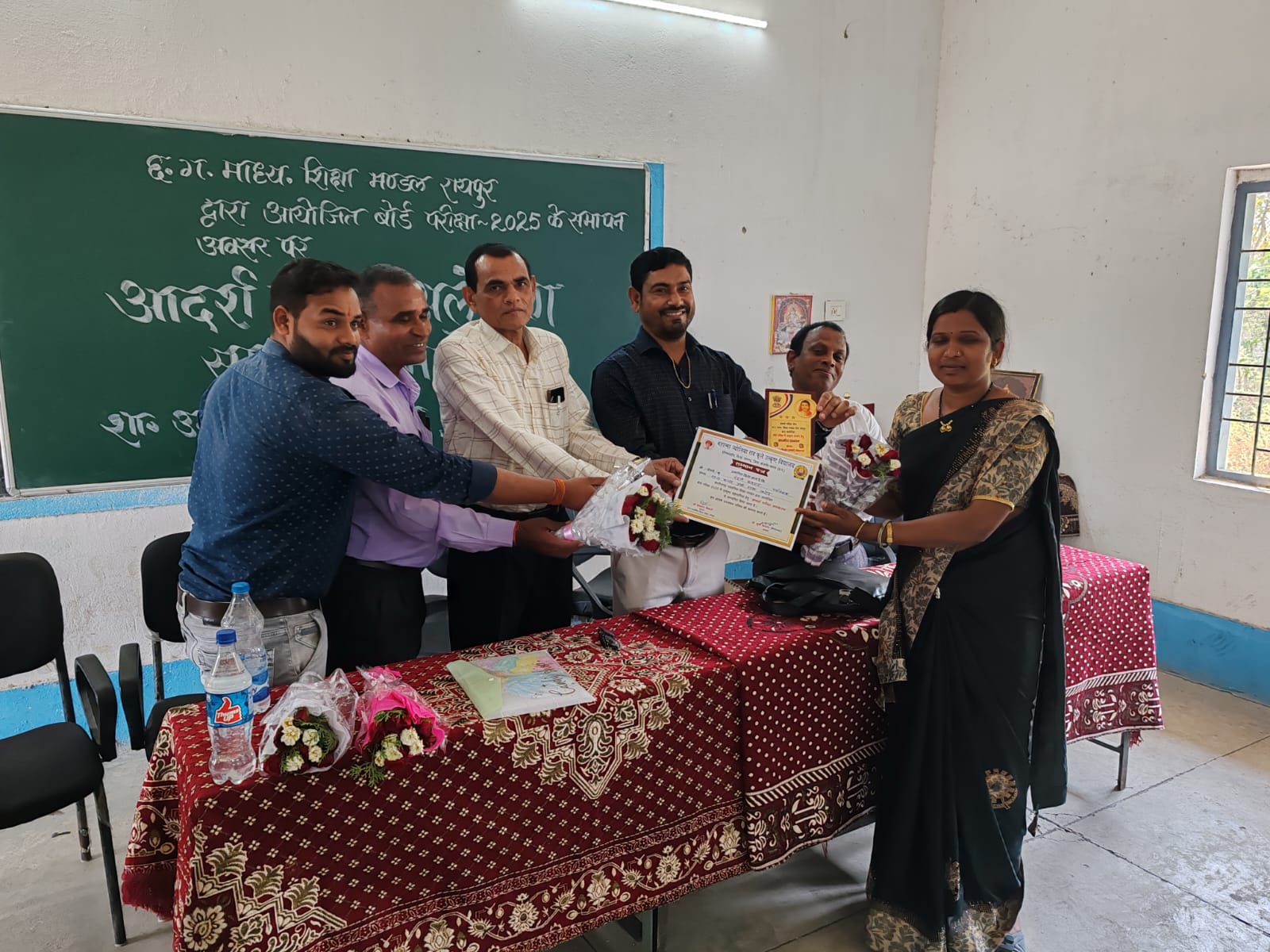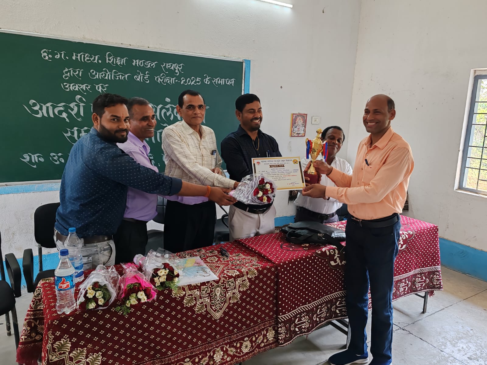 शा, उ.मा .वि .खरौद में जो छ. ग.माध्यमिक शिक्षा मंडल द्वारा 10 वी व 12 वी की परीक्षा के लिए केंद्र बनाया गया था जहाँ के केन्द्राध्यक्ष के रूप में डा. कुंज किशोर नियुक्त किए गए इस केन्द्र में परीक्षा की सम्पन्न होने के उपरांत केन्द्राध्यक्ष डा. कुंज किशोर द्वारा आदर्श परीक्षा अलंकरण सम्मान समारोह का आयोजन किया गया जिसमें सहायक केन्द्राध्यक्ष एवं वीक्षको व लिपिक एवं चतुर्थ श्रेणी कर्मचारियों का सम्मान पत्र एवं मोमेन्टो द्वारा सम्मानित किया गया। इस कार्यक्रम में मुख्य अतिथि छत्तीसगढ़ माध्यमिक शिक्षा मंडल के सदस्य चन्द्रकान्त तिवारी रहे, अध्यक्षता डा.कुंज किशोर केन्द्राध्यक्ष एवं विशिष्ट अतिथि एच.एल.धृतलहरे प्राचार्य शा.उ. मा.वि.खरौद एवं संतोष कश्यप प्राचार्य शा.उ.मा.वि. महंत की उपस्थित रही , कार्यक्रम में संतोष कश्यप द्वारा कलेक्टर के उत्कृष्ट जांजगीर की सराहना की तथा डा. कुंज किशोर ने परीक्षा संचालन में सहयोग के लिए सभी वीक्षको ,सहायक केन्द्राध्यक्ष एवं चतुर्थ श्रेणी की सराहना की वही मुख्य अतिथि चंद्रकांत तिवारी द्वारा परीक्षा के सुव्यवस्थित ढंग से संचालन के लिए केन्द्राध्यक्ष एवं टीम को सराहना की और परीक्षा परिणाम श्रेष्ठतम हो आशा की कार्यक्रम के अंत में आभार के.एल.श्रीवास व्याख्याता द्वारा किया गया संचालन जागेश्वर सिदार द्वारा किया गया।