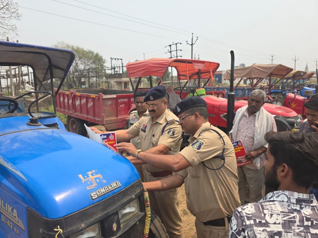 इसी क्रम में वरिष्ठ पुलिस अधीक्षक  विवेक शुक्ला (IPS) के निर्देशन में जांजगीर चांपा पुलिस द्वारा अतिरिक्त पुलिस अधीक्षक  उमेश कुमार कश्यप के कुशल मार्गदर्शन में थाना जांजगीर क्षेत्रांतर्गत के ट्रैक्टर – पिकअप वाहन मालिकों एवं चालकों का थाना स्तर में रजिस्टर तैयार किया जा रहा है। सभी वाहनों पर यातायात संबंधी महत्वपूर्ण हिदायतें लिखी जाकर स्टिकर चिपकाई जा रही हैं ताकि वाहन चालक और यात्री सड़क सुरक्षा नियमों का पालन करें। इस संबंध में वाहन चालकों/मालिकों को जागरूक की जा रही है