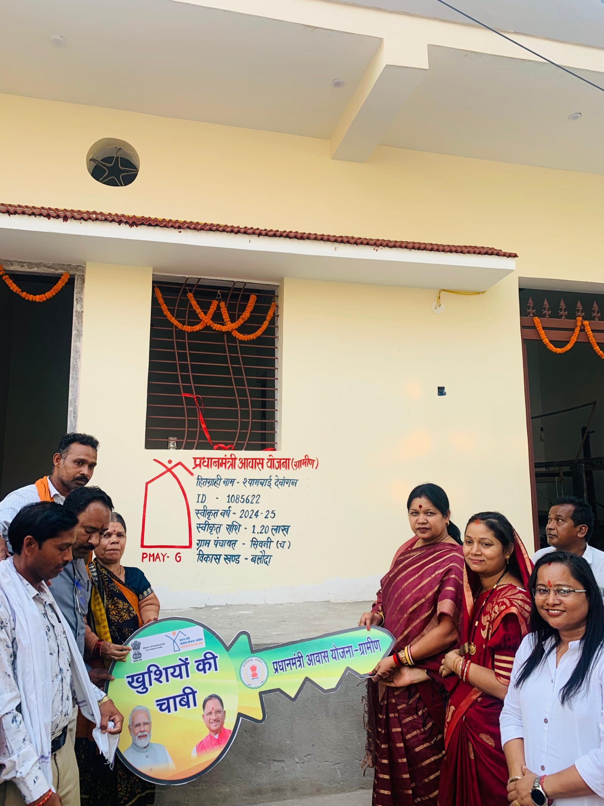 जांजगीर-चांपा 17 अप्रैल 2025/ प्रधानमंत्री आवास योजना ग्रामीण अंतर्गत आवास प्लस 2.0 सर्वेक्षण के लिए प्रदेशव्यापी मोर दुआर साय सरकार महाभियान के तहत जांजगीर-चांपा लोकसभा सांसद श्री कमलेश जांगड़े ने आज विकासखंड बलौदा के ग्राम पंचायत सिवनी च के आवास हितग्राही श्री सुरेश कुमार देवांगन एवं श्री राजा राम देवांगन के घर पहुंचकर मोबाइल ऐप पर सर्वेक्षण किया। उन्होंने सभी संबंधित अधिकारियों को सर्वेक्षण कार्य पूर्ण कर हितग्राहियों को ज्यादा से ज्यादा लाभ दिलाने कहा। इसके साथ ही उन्होंने आवास पूर्ण होने पर, लाभार्थियों को उनके घर की चाबी सौंपी । इस अवसर पर जिला पंचायत सदस्य श्रीमती उमा राठौर, जिला पंचायत सीईओ श्री गोकुल रावटे सहित अन्य जनप्रतिनिधि, अधिकारी-कर्मचारी एवं ग्रामवासी उपस्थित रहे।