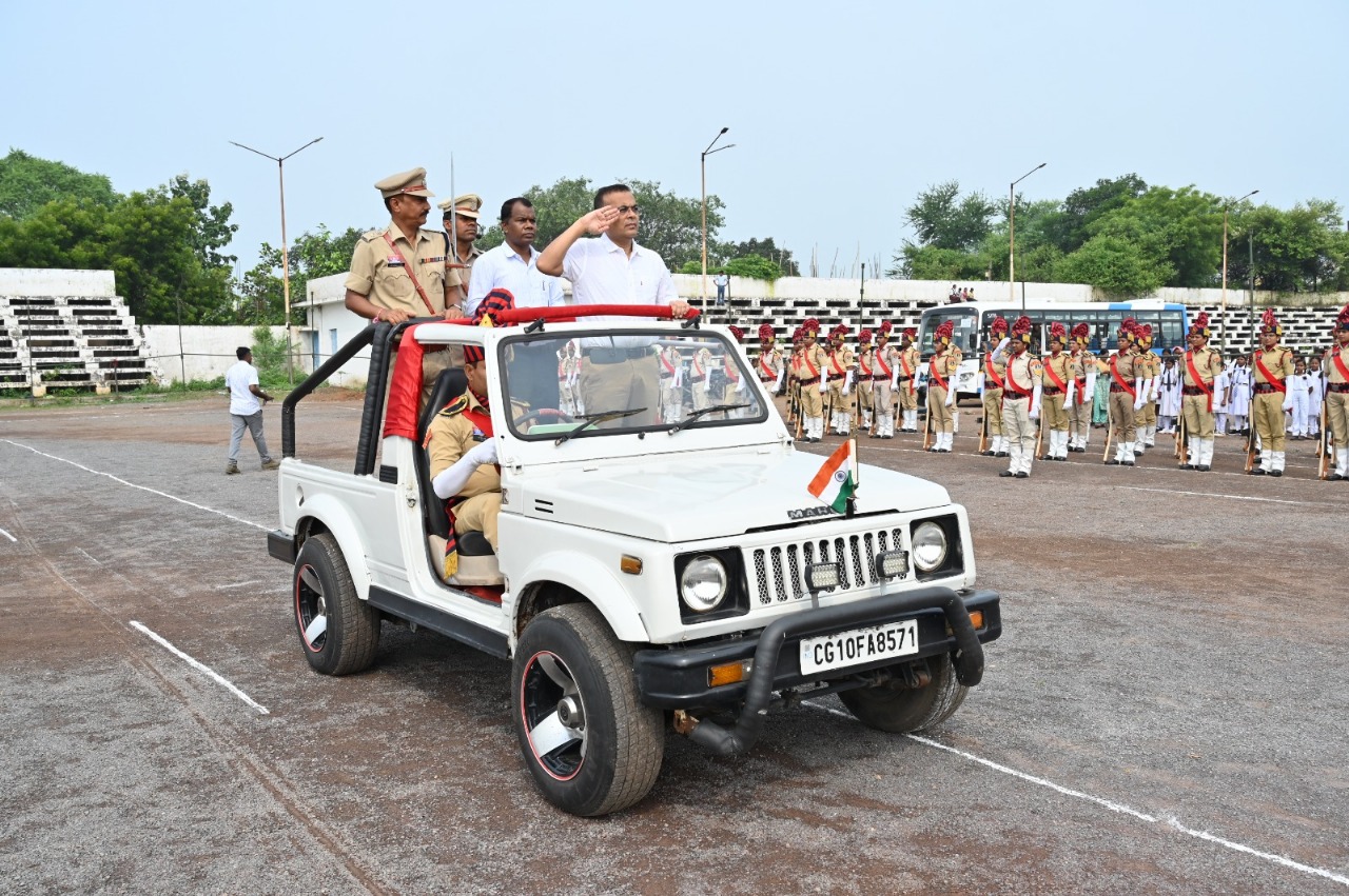 जांजगीर-चांपा 13 अगस्त 2025/ कलेक्टर जन्मेजय महोबे एवं पुलिस अधीक्षक विजय कुमार पांडेय ने आज शासकीय हाई स्कूल मैदान जांजगीर में स्वतंत्रता दिवस पर आयोजित होने वाले कार्यक्रम, परेड और सांस्कृतिक कार्यक्रमों के अंतिम रिहर्सल व तैयारियों का जायजा लिया। स्वतंत्रता दिवस समारोह के अंतिम रिहर्सल में कलेक्टर जन्मेजय महोबे ने मुख्य अतिथि की भूमिका निभाई। उन्होंने ध्वजारोहण कर परेड की सलामी ली और परेड कमांडरों से परिचय प्राप्त किया। इस दौरान जिला स्तरीय कार्यक्रम का मिनट्स टू मिनट्स अभ्यास किया गया। साथ ही कार्यक्रम की तैयारी का फुल ड्रेस रिहर्सल किया गया।