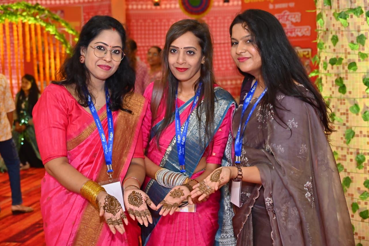 महिला सम्मेलन में महतारियों का उत्साह, तीजहारिन बहनों ने लगवाई मेंहदी