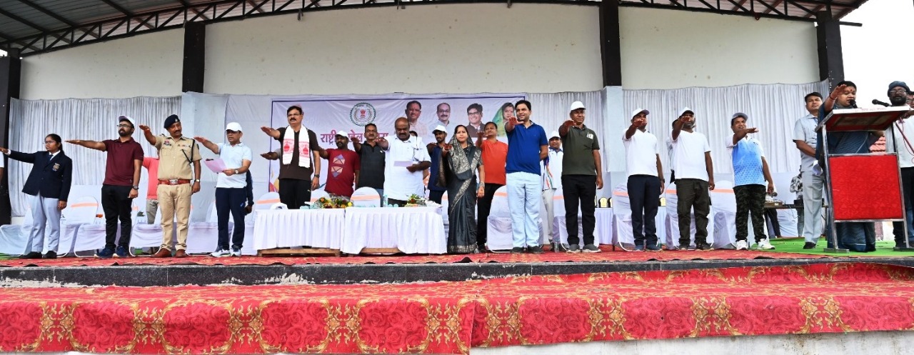 कार्यक्रम में सांसद श्रीमती कमलेश जांगड़े ने उपस्थित जनों को फिट इंडिया की शपथ दिलाई। उन्होंने अपने उद्बोधन में कहा कि खेल जीवन के सर्वांगीण विकास के लिए अत्यंत आवश्यक हैं। खेलकूद से युवा पीढ़ी न केवल स्वस्थ रहती है, बल्कि उनमें अनुशासन और टीम भावना का भी विकास होता है। राष्ट्रीय खेल दिवस के शुभ अवसर पर 29 से 31 अगस्त तक विभिन्न खेल कार्यक्रमों की श्रृंखला आयोजित की जाएगी। उन्होंने खिलाड़ियों और युवाओं से कहा कि वे खेलों में उत्कृष्ट प्रदर्शन कर जिले, राज्य और देश का नाम गौरवान्वित करें। इस दौरान सांसद श्रीमति जांगड़े ने सांसद खेल महोत्सव का शुभारंभ किया। इस अवसर पर रस्साकशी तथा हैंडबॉल, हॉकी खेल का आयोजन किया गया। कार्यक्रम का संचालन व्याख्याता श्री दीपक कुमार यादव ने किया।