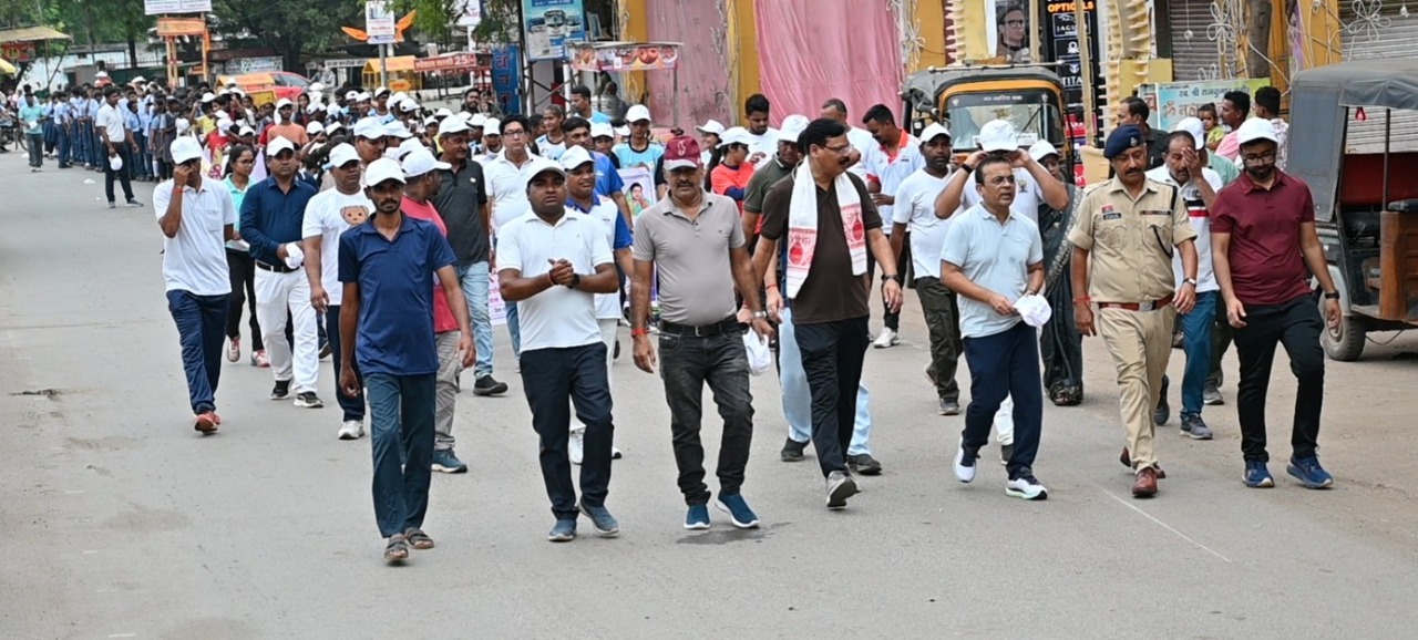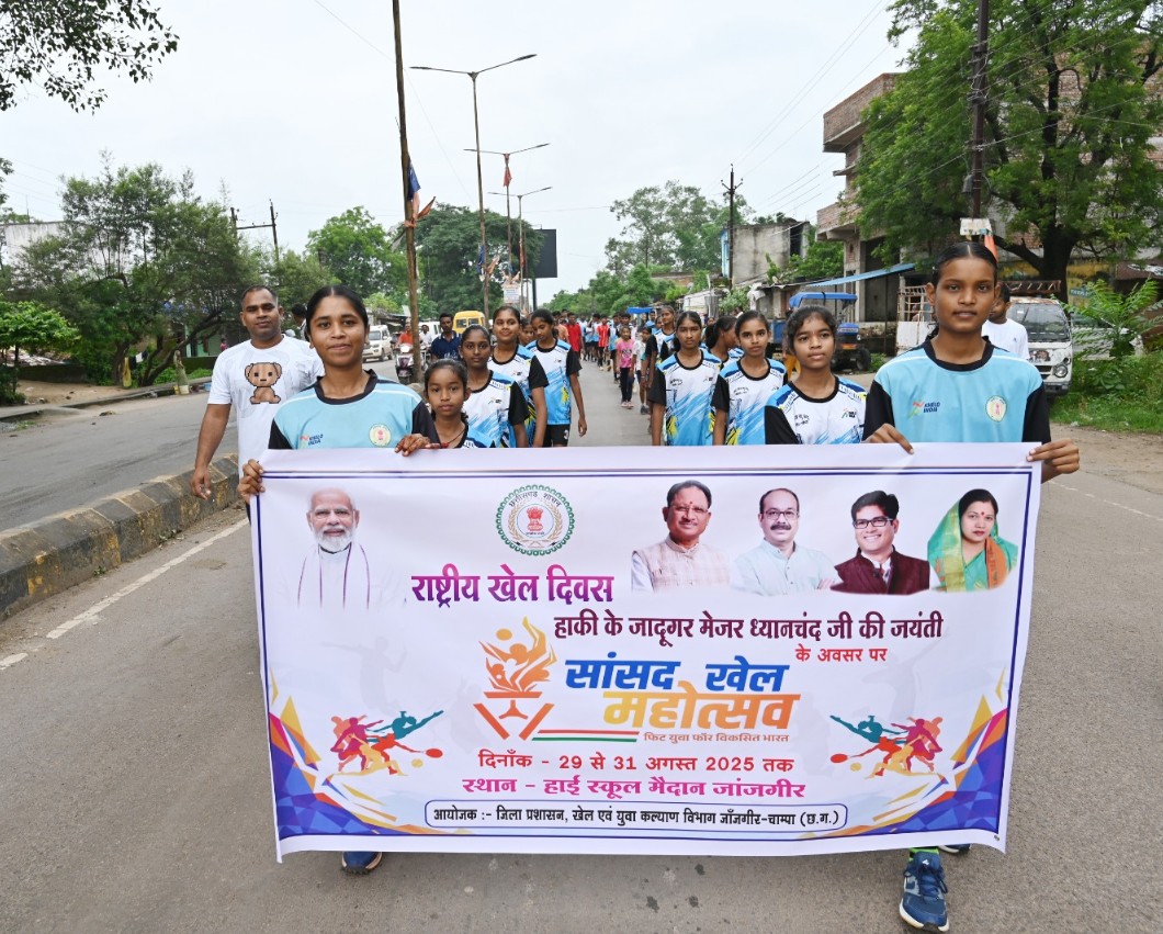जांजगीर-चांपा 29 अगस्त 2025/ राष्ट्रीय खेल दिवस के अवसर पर आज प्रातः 7 बजे फिटनेस रैली मेजर ध्यानचंद हॉकी मैदान से प्रारंभ होकर कचहरी चौक होते हुए हाई स्कूल मैदान जांजगीर तक निकाली गई। कार्यक्रम के माध्यम से फिटनेस के साथ युवाओं को खेलों के प्रति प्रेरित करने का संदेश भी दिया गया। फिटनेस रैली में लोकसभा क्षेत्र जांजगीर-चांपा सांसद श्रीमती कमलेश जांगड़े, जांजगीर-चांपा विधायक जांजगीर-चांपा श्री ब्यास कश्यप, पूर्व विधायक श्री अंबेश जांगड़े, जिला पंचायत उपाध्यक्ष श्री गगन जयपुरिया, नगर पालिका जांजगीर-नैला अध्यक्ष श्रीमती रेखा देवा गढे़वाल, नगर पालिका उपाध्यक्ष श्री मोहन यादव, कलेक्टर श्री जन्मेजय महोबे, पुलिस अधीक्षक श्री विजय पांडेय, डीएफओ श्री हिमांशु डोंगरे, पार्षदगण, खेल संघ के पदाधिकारी एवं जनप्रतिनिधियों सहित बड़ी संख्या में खिलाड़ी, छात्र-छात्राएँ उपस्थित रहे।