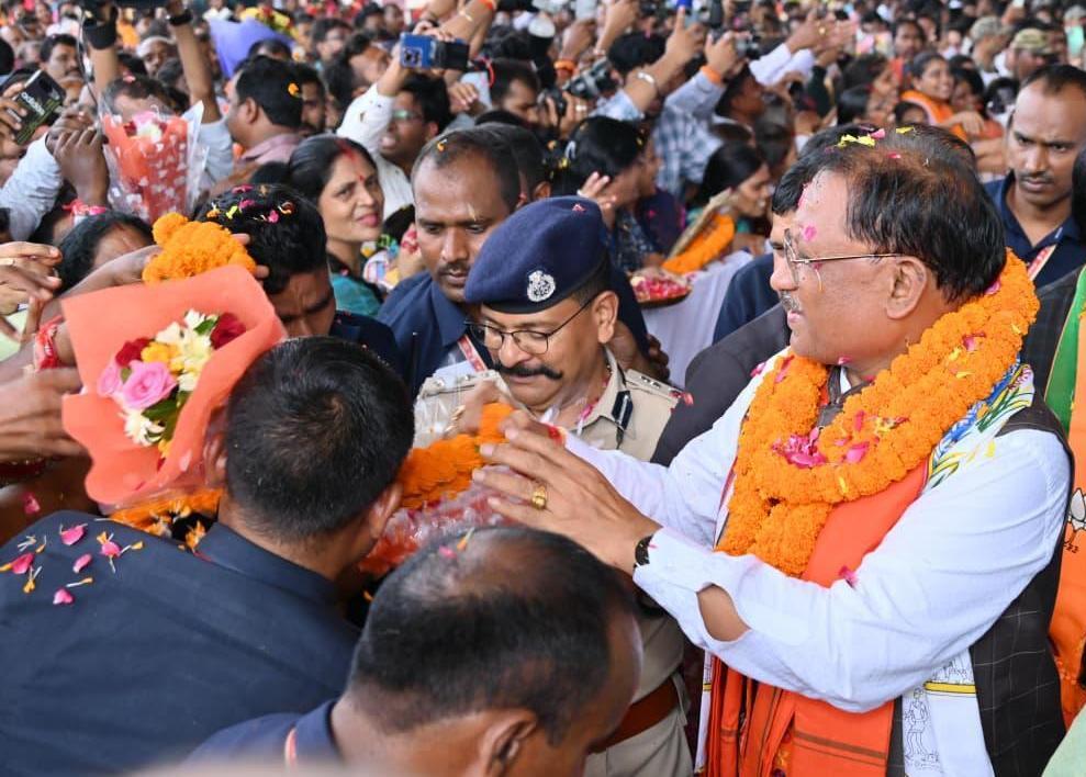 रायपुर, 30 अगस्त 2025/ अपनी आठ दिन के जापान और दक्षिण कोरिया के विदेश दौरे के बाद आज मुख्यमंत्री श्री विष्णु देव साय वापस रायपुर लौटे हैं। श्री साय के वापस लौटने पर आज एयरपोर्ट पर उनका भव्य स्वागत किया गया। छत्तीसगढ़ के पारंपरिक कर्मा और पंथी नृत्यों से पूरा एयरपोर्ट परिसर लगभग एक घंटे तक सराबोर रहा। लोगों की बड़ी संख्या में मौजूदगी ने मुख्यमंत्री श्री साय की लोकप्रियता और उनके विदेश दौरे की सफलता को स्वयं ही बयां कर दिया। मुख्यमंत्री का पुष्प गुच्छों से लेकर गजमाला तक से स्वागत किया गया। एयरपोर्ट के निकास द्वार से मीडिया गैलेरी तक लगभग 100 मीटर की दूरी तय करने में श्री साय को लगभग 15 मिनट लगे। इस दौरान लोगों ने पुष्प वर्षा से भी श्री साय का स्वागत किया। बाद में मुख्यमंत्री ने उपस्थित जनसमुदाय को सम्बोधित किया और इस भव्य स्वागत के लिए सभी का आभार जताया। मुख्यमंत्री ने कहा कि जापान और दक्षिण कोरिया दोनों ही देशों में बड़ा भारतीय समुदाय बसा हुआ है और हमारे छत्तीसगढ़ के लोग भी वहां पर व्यापारिक कार्यों में लगे हुए हैं। उनसे मिलकर मुझे बहुत अच्छा महसूस हुआ और यह लगा ही नहीं कि हम परदेश में हैं। उन्होंने कहा कि हमारे उद्यमी, हमारे कारोबारी पूरी दुनिया में फैले हुए हैं और भारत भूमि का नाम हर तरफ रोशन कर रहे हैं।