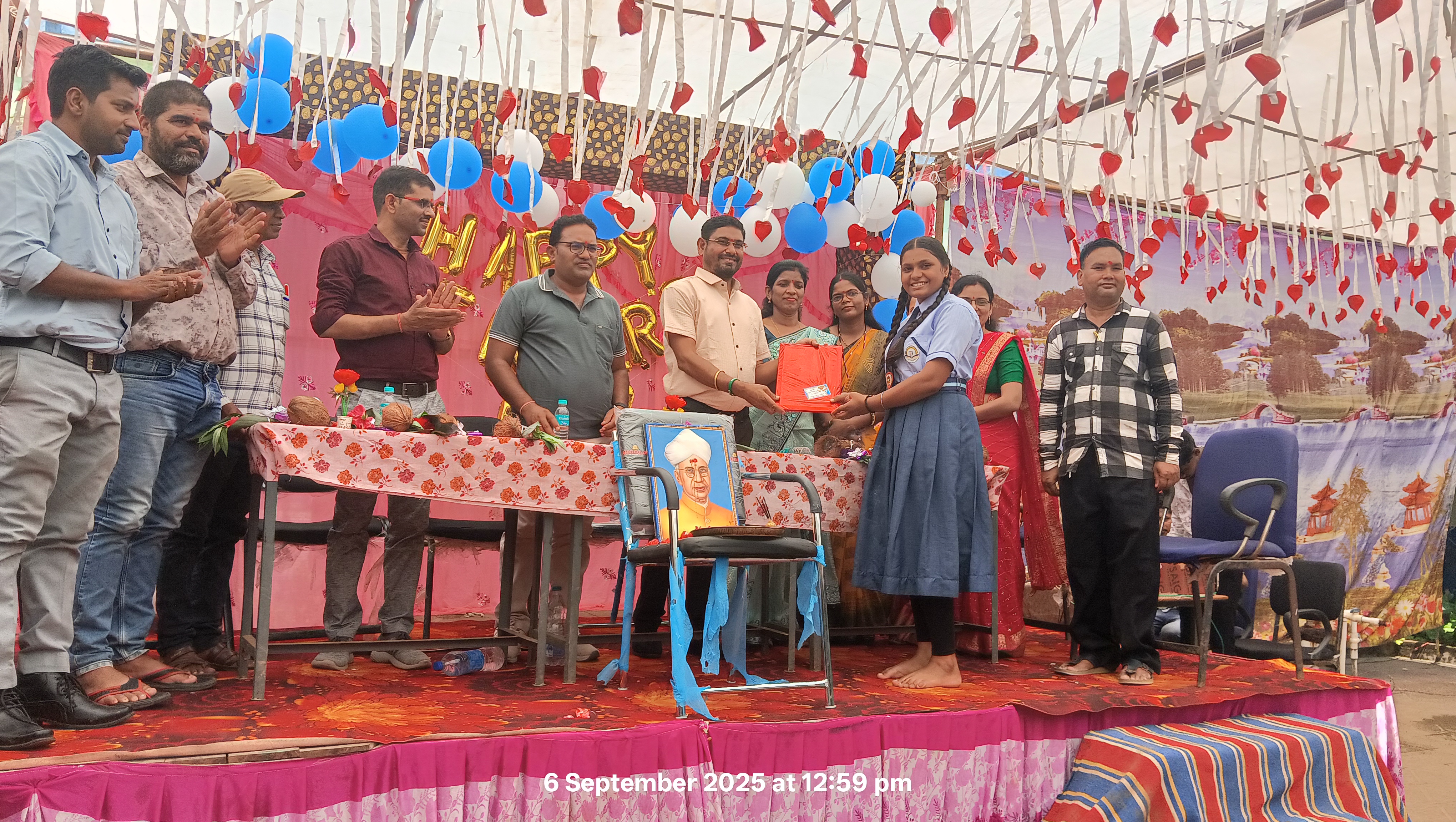 महात्मा ज्योतिबा राव फुले उत्कृष्ट विद्यालय डोंगाकोहरौद विकासखंड पामगढ़ जिला जांजगीर चांपा मैं विद्यार्थियों के नेतृत्व तथा प्राचार्य डॉक्टर कुंज किशोर के मार्गदर्शन में डॉक्टर सर्वपल्ली राधा डॉक्टर सर्वपल्ली राधाकृष्णन के जन्म जयंती के अवसर पर भाव य शिक्षक दिवस का आयोजन किया गया जिसमें विद्यार्थियों द्वारा सभी शिक्षकों का फूल वर्ष करके स्वागत किया गए एवं स्वागत के बाद लेखनी श्री फल से सम्मानित किये गये।कक्षा ग्यारहवीं के विद्यार्थियों के द्वारा प्राचार्य का शानदार फोटो एवं कक्षा दसवीं के द्वारा सभी स्टाफ के फोटोग्राफ फ्रेमिंग करके उपहार स्वरूप प्रदान किया साथ ही साथ सभी कक्षा के विद्यार्थियों के द्वारा शिक्षक सम्मान में अपने विचार भी प्रस्तुत किया शिक्षकों ने भी बच्चों को आशीर्वाद दिए और शिक्षक सम्मान के लिए उनको । दिल से धन्यवाद ज्ञापित किया ।विद्यार्थियों के द्वारा सभी शिक्षकों और सभी छात्र-छात्राओं के लिए स्वादिष्ट भोजन का इंतजाम किए सभी विद्यार्थी कुशलता पूर्वक भोजन किया एवं शिक्षकों ने भी हैं भजन न का रस स्वादन का आनंद प्राप्त किया प्राचार्य डॉक्टर कुंज किशोर के द्वारा सभी विद्यार्थियों के उक्त कृत्य के लिए प्रशंसा दिए और आगे अनुशासित तरीके से पढ़ाई आगे करने के लिए उन्होंने सबको आशीर्वाद दिए साथ ही साथ अपने चरित्र निर्माण के लिए विशेष बल देते हुए विद्यार्थी को अनुशासित तरीके से नियमित शिक्षा प्राप्त करने के लिए सभी से अपील करते हुए अपनी बात को रखें और सभी बच्चों को आशीर्वाद प्रदान किया इस कार्यक्रम में मुख्य रूप से संस्था के प्राचार्य डॉ कुंज किशोर के साथ वरिष्ठ व्याख्याता श्री वीरेंद्र देवांगन श्रीमती रतन साहू श्रीमती रीना तिवारी श्रीमती लता सिंह श्रीमती मधु और श्री हिमाचल साहू जी श्री मंगल जी श्री प्रमोद गुरुजी श्री गोपाल चौबे जी श्री संत स्टैंडर्ड जी श्री संतोष टंडन के साथ सभी कक्षा के विद्यार्थी उपस्थित रहे उत्कृष्ट शिक्षक के रूप में सम्मान प्राप्त श्री प्रमोद ध्रुव को संस्था प्राचार्य के द्वारा श्रीफल के साथ ही साथ कलाम सम्मान के रूप में प्रधान किया गया कार्यक्रम का संचालन कुमारी भूमिका पटेल कक्षा ग्यारहवीं एवं उनके सहयोगी के द्वारा किया गया और प्रमुख रूप से इस कार्यक्रम को पूर्ण करने में आशीष बंजारे एवं भूपेंद्र पटेल विवेक यादव चांदनी यादव टिंकू यादव शुभम भास्कर सभी कक्षाओं के क्लास कैप्टन अप कप्तान छात्र प्रभारी स्वच्छता प्रभारी एवं कार्यक्रम प्रभारी के द्वारा बेहद उत्साह पूर्वक यह कार्यक्रम आयोजित किया गया।