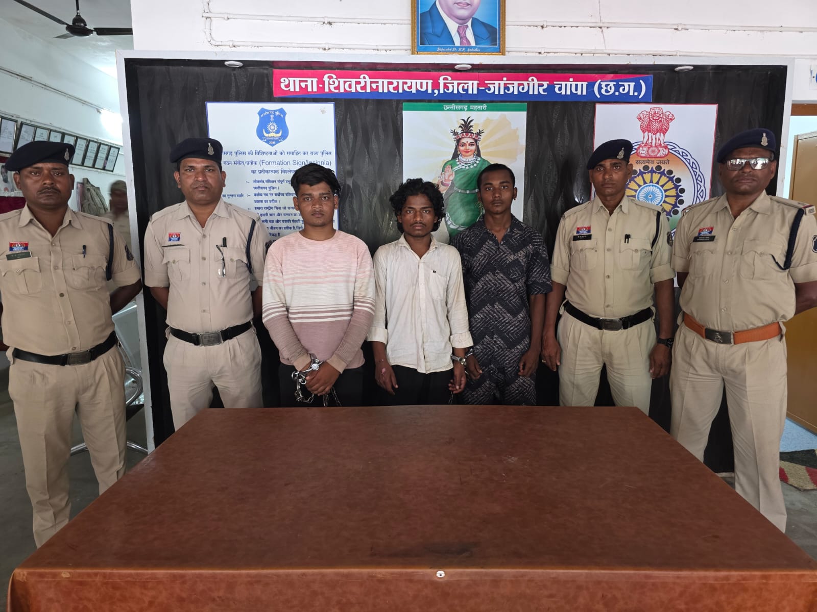 सामूहिक आनाचार के घटना को गंभीरता से लेते हुए पुलिस अधीक्षक श्री विजय कुमार पाण्डेय (IPS) के निर्देशन में अतिरिक्त पुलिस अधीक्षक श्री उमेश कुमार कश्यप के मार्गदर्शन में अनुविभागीय अधिकारी पुलिस चांपा के नेतृत्व में थाना प्रभारी निरीक्षक प्रवीण कुमार द्विवेदी एवं सहायक उपनिरीक्षक राम प्रसाद बघेल चौकी प्रभारी राहौद एवं टीम द्वारा आरोपियों को किया गया 24 घंटे के अंदर गिरफ्तार।*