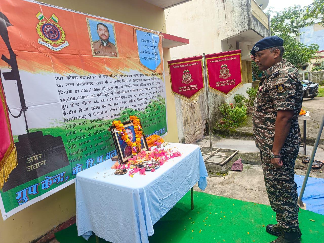 भारत सरकार के पहल पर केन्द्रीय रिजर्व पुलिस बल के जवान इस देश की सेवा करते हुए जोकि किसी आंतकवादी हमला, मुठभेड़, नक्सली हमला मे अपना सर्वाेच्च बलिदान देते हुए वीरगति को प्राप्त हो गये, के सम्मान में शहीद की पुण्य तिथि पर प्रत्येक वर्ष की भॉति महनिदेशालय केन्द्रीय रिजर्व पुलिस बल के निर्देशानुसार ग्रुप केन्द्र बिलासपुर के क्षेत्राधिकार में आने वाले शहीद बल स्वर्गीय ललित कुमार के पुण्यतिथि पर श्री नील कमल भारद्वाज उप कमाण्डेन्ट के प्रतिनिधित्व में ग्रुप केन्द्र बिलासपुर से केन्द्रीय रिजर्व पुलिस बल के अधिकारी एवं जवानों द्वारा शहीद की पुण्य तिथि पर शहीद के घर श्रद्धांजलि देते हुए श्रद्धा सुमन अर्पित किया गया एवं शहीद के परिवार को सम्मानित किया गया।