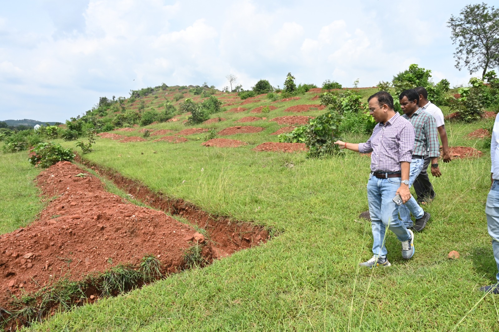 जांजगीर- चांपा 5 अक्टूबर 2025 /कलेक्टर जन्मेजय महोबे ने रविवार को जिले के विकास कार्यों की वास्तविक स्थिति परखने के लिए जनपद पंचायत बलौदा के सुदूर ग्राम हेडसपुर और बक्सरा का दौरा किया। कलेक्टर गांव की पगडंडियों और खेतों की मेड़ों से होते हुए हेडसपुर की पहाड़ियों पर पहुंचे और वहां मनरेगा के तहत बनाए गए कंटूर ट्रेंच कार्य का निरीक्षण किया। उन्होंने जल संरक्षण के इन प्रयासों की सराहना की और कहा कि इस पहाड़ी पर व्यापक स्तर पर पौधरोपण कर हरियाली बढ़ाई जाए, ताकि वर्षा जल संरक्षित हो और पर्यावरण भी संवर्धित हो।कलेक्टर ने निर्देश दिए कि कंटूर ट्रेंच निर्माण से पहले और बाद में जल संचयन की मात्रा का तुलनात्मक विवरण तैयार कर प्रस्तुत किया जाए।