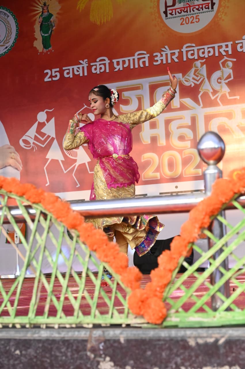 जांजगीर-चांपा 02 नवम्बर 2025/ छत्तीसगढ़ राज्य के स्थापना के 25 वर्ष के अवसर पर शासकीय हाई स्कूल मैदान में आयोजित 2 से 4 नवम्बर 2025 तक तीन दिवसीय जिला स्तरीय राज्योत्सव कार्यक्रम का मुख्य अतिथि जांजगीर-चांपा लोकसभा सांसद श्रीमती कमलेश जांगड़े ने शुभारंभ किया। अतिथियों ने कार्यक्रम स्थल पर लगाये गये विभिन्न विभागों द्वारा 25 वर्ष की उपलब्धियों पर आधारित प्रदर्शनी व स्टॉल का अवलोकन किया। इस अवसर पर आज हाईस्कूल मैदान जांजगीर में विभिन्न विभागों द्वारा छत्तीसगढ़ के 25 वर्षों में आधारित विकास कार्यों की प्रदर्शनी और शालेय छात्र-छात्राओं व स्थानीय कलाकारों द्वारा विभिन्न सांस्कृतिक कार्यक्रम की प्रस्तुति दी गई।