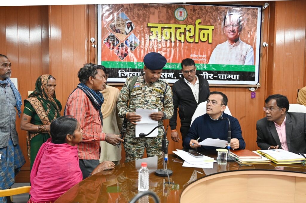 जांजगीर-चांपा 01 दिसम्बर 2025/ कलेक्टर श्री जन्मेजय महोबे ने आज कलेक्टोरेट सभाकक्ष में आयोजित जनदर्शन कार्यक्रम के माध्यम से जिले के ग्रामीण एवं शहरी क्षेत्रों से आए नागरिकों की समस्याओं, शिकायतों और मांगों को सुना। उन्होंने संबंधित अधिकारियों को समस्याओं को प्राथमिकता के साथ और समय-सीमा में निराकरण के निर्देश दिए। जनदर्शन में आज कुल 65 आवेदन प्राप्त हुए।