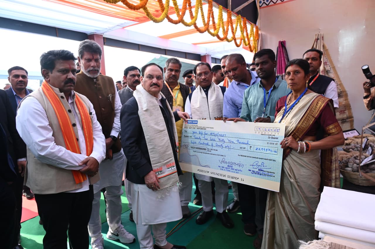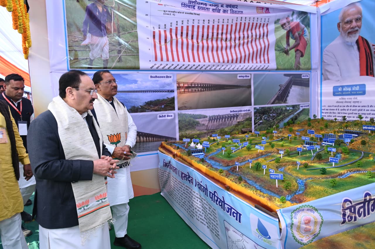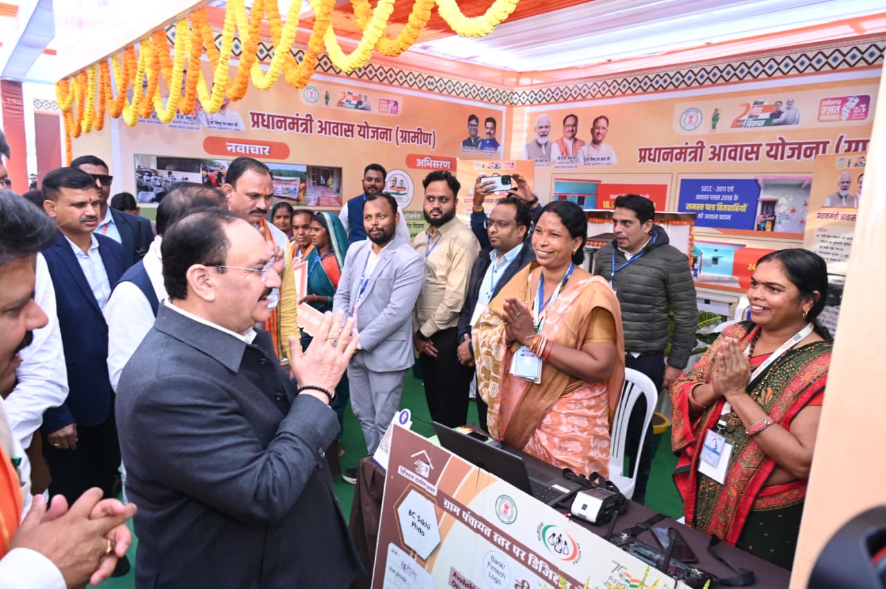 केन्द्रीय स्वास्थ्य मंत्री जे.पी. नड्डा और मुख्यमंत्री विष्णु देव साय ने जनादेश परब में विभागीय स्टॉलों का किया अवलोकन, पात्र हितग्राही विभिन्न योजनाओं से हुए लाभान्वित