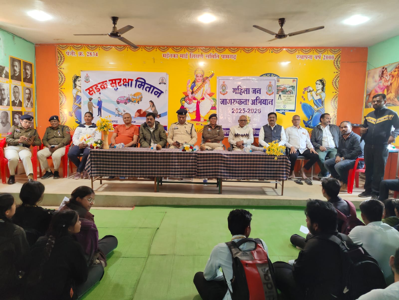 जांजगीर-चांपा पुलिस द्वारा महिला जन- जागरूकता एवं सड़क सुरक्षा अभियान के तहत एक विशेष कार्यक्रम का आयोजन स्थानीय विद्या निकेतन मॉडल कॉन्वेंट एवं उच्चतर माध्यमिक विद्यालय पामगढ़ में किया गया।