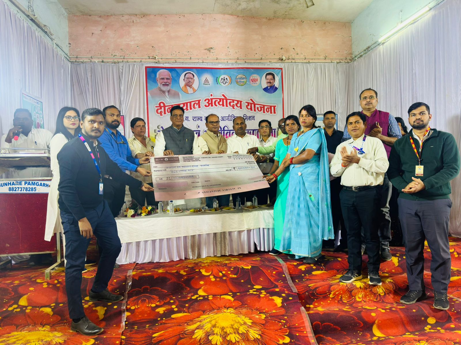 जनपद पंचायत पामगढ़ के सद्भावना भवन में दीनदयाल अंत्योदय योजना राष्ट्रीय ग्रामीण आजीविका मिशन (बिहान) अंतर्गत आयोजित आजीविका ऋण मेला के माध्यम से स्वयं सहायता समूहों एवं पात्र हितग्राहियों को बैंक ऋण से जोड़ते हुए स्वरोजगार के अवसर उपलब्ध कराए गए। दीनदयाल अंत्योदय योजना राष्ट्रीय ग्रामीण आजीविका मिशन अंतर्गत कुल 304 प्रकरणों को स्वीकृत करते हुए 8.83 करोड़ रुपये की ऋण राशि प्रदान की गई। ऋण मेला के दौरान हितग्राहियों को ऋण स्वीकृति आदेश की प्रतियाँ वितरित की गईं, जिससे वे अपना व्यवसाय प्रारंभ कर आत्मनिर्भर बन सकें। इस दौरान हितग्राहियों द्वारा मेरी कहानी मेरी जुबानी सुनाया गया।