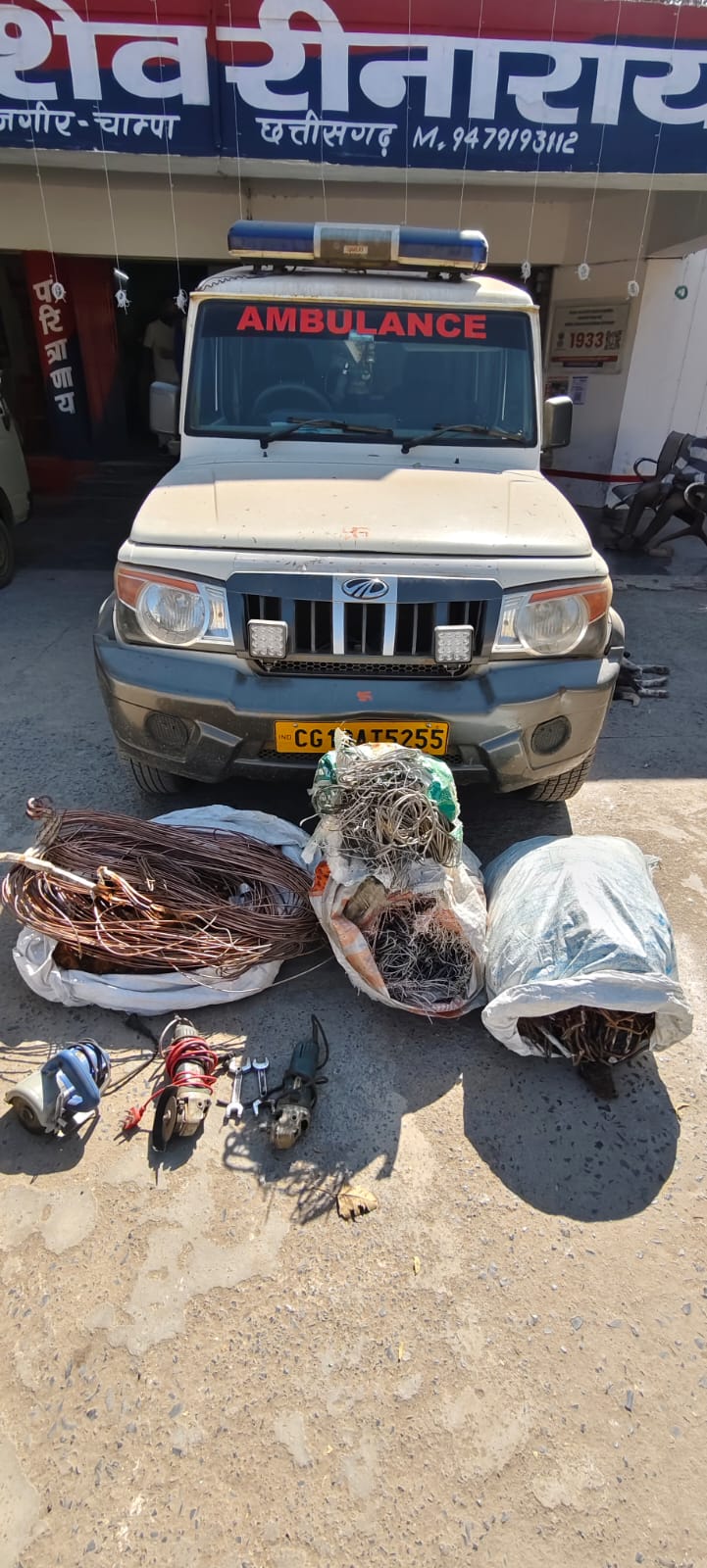 शिवरीनारायण थाना क्षेत्र में विद्युत ट्रांसफार्मरों से कॉपर वायर चोरी की लगातार हो रही घटनाओं पर प्रभावी कार्यवाही करते हुए पुलिस ने पुलिस अधीक्षक विजय कुमार पाण्डेय IPS के निर्देशन में एक संगठित चोरी गिरोह का पर्दाफाश किया है। इस गिरोह द्वारा ट्रांसफार्मरों से कॉपर/एल्युमिनियम वायर चोरी कर कबाड़ में खपाने का संगठित नेटवर्क संचालित किया जा रहा था।