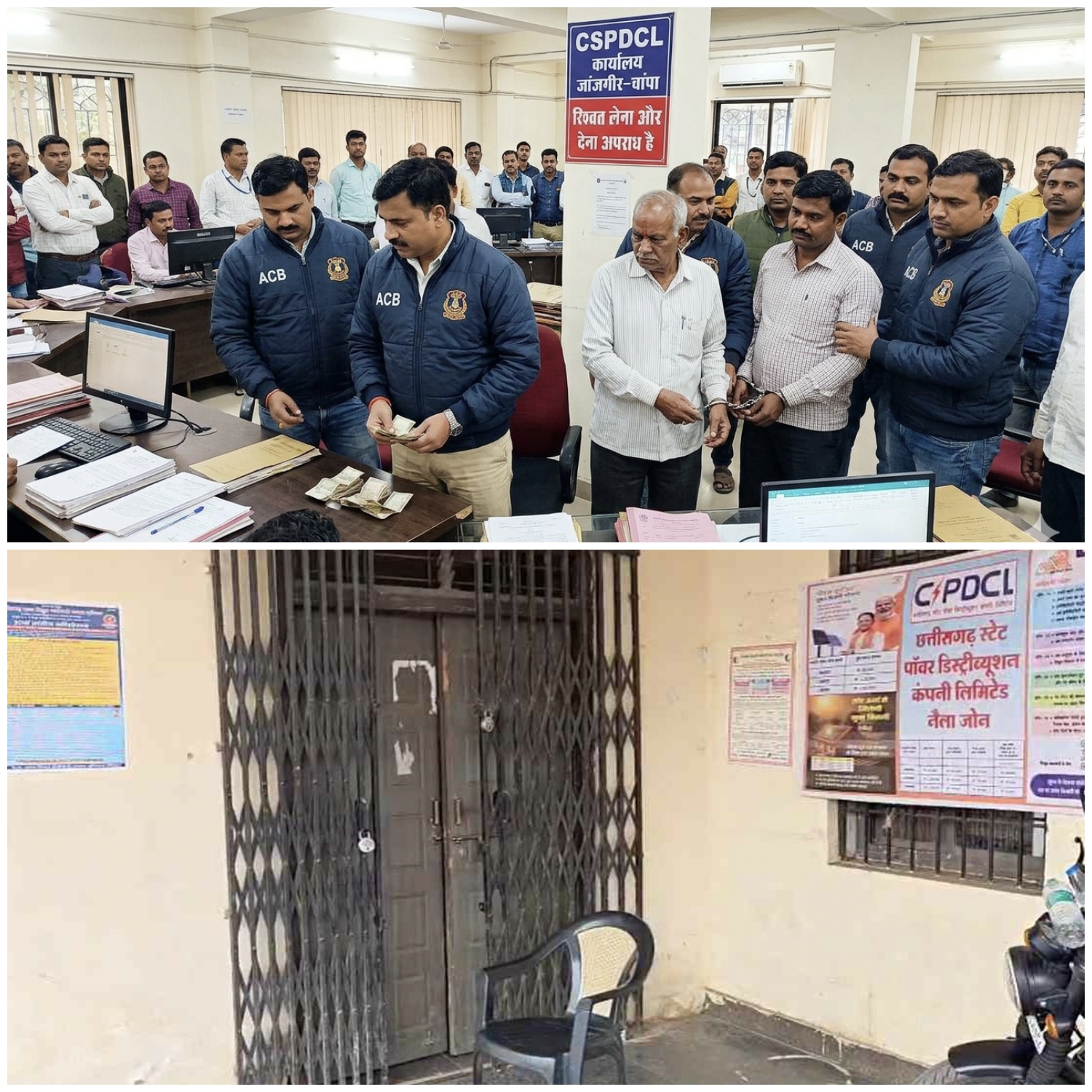 CG BREAKING NEWS: जांजगीर में ACB की बड़ी कार्यवाही बिजली विभाग के तीन अधिकारी जेई, एई और कंप्यूटर ऑपरेटर रिश्वत लेते गिरफ्तार