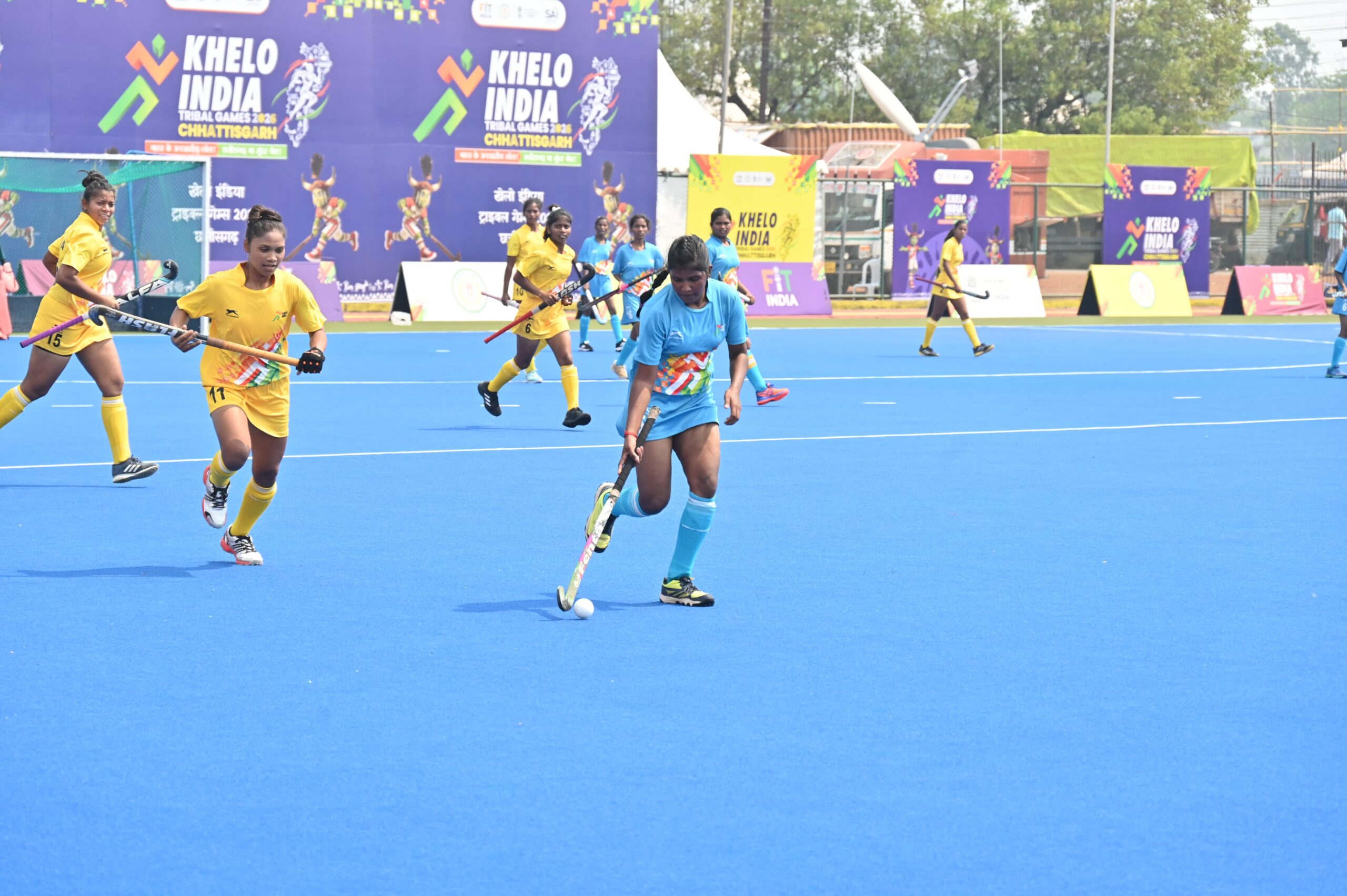 रायपुर, 27 मार्च 2026/ खेलो इंडिया ट्राइबल गेम्स के अंतर्गत राजधानी रायपुर स्थित सरदार वल्लभभाई पटेल इंटरनेशनल हॉकी स्टेडियम में आज तीसरे दिन महिला हॉकी प्रतियोगिता के मुकाबले खेले गए।