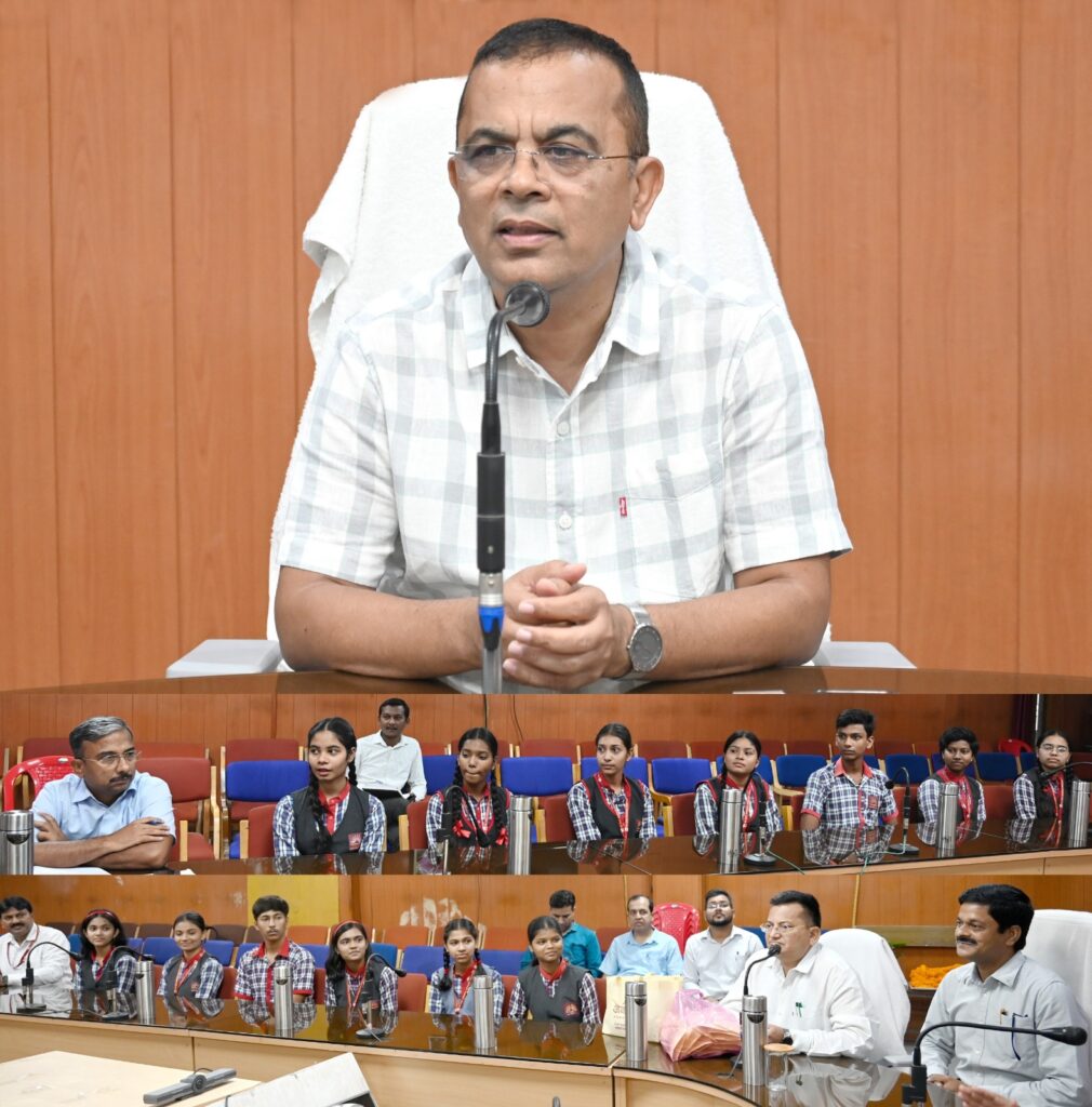 जांजगीर-चांपा, 20 अप्रैल 2026/कलेक्टर  जन्मेजय महोबे ने कलेक्ट्रेट सभा कक्ष में पीएम श्री केंद्रीय विद्यालय जांजगीर के कक्षा 10वीं बोर्ड परीक्षा 2026 में उत्कृष्ट प्रदर्शन करने वाले छात्रों से मुलाकात कर उनका सम्मान किया। इस अवसर पर उन्होंने मेधावी विद्यार्थियों को पुष्पमाला पहनाकर और मिठाई खिलाकर बधाई एवं शुभकामनाएं दी। कलेक्टर महोबे ने विद्यार्थियों को संबोधित करते हुए कहा कि जीवन में लक्ष्य निर्धारित कर नियमित अध्ययन और निरंतर मेहनत से ही सफलता हासिल की जा सकती है। 10वीं के बाद अपने लक्ष्य के अनुरूप विषय निर्धारण कर आगे बढ़े और सफलता प्राप्त करें। उन्होंने विद्यार्थियों को आगे भी इसी तरह उत्कृष्ट प्रदर्शन करने के लिए प्रेरित किया और उनके उज्ज्वल भविष्य की कामना की।