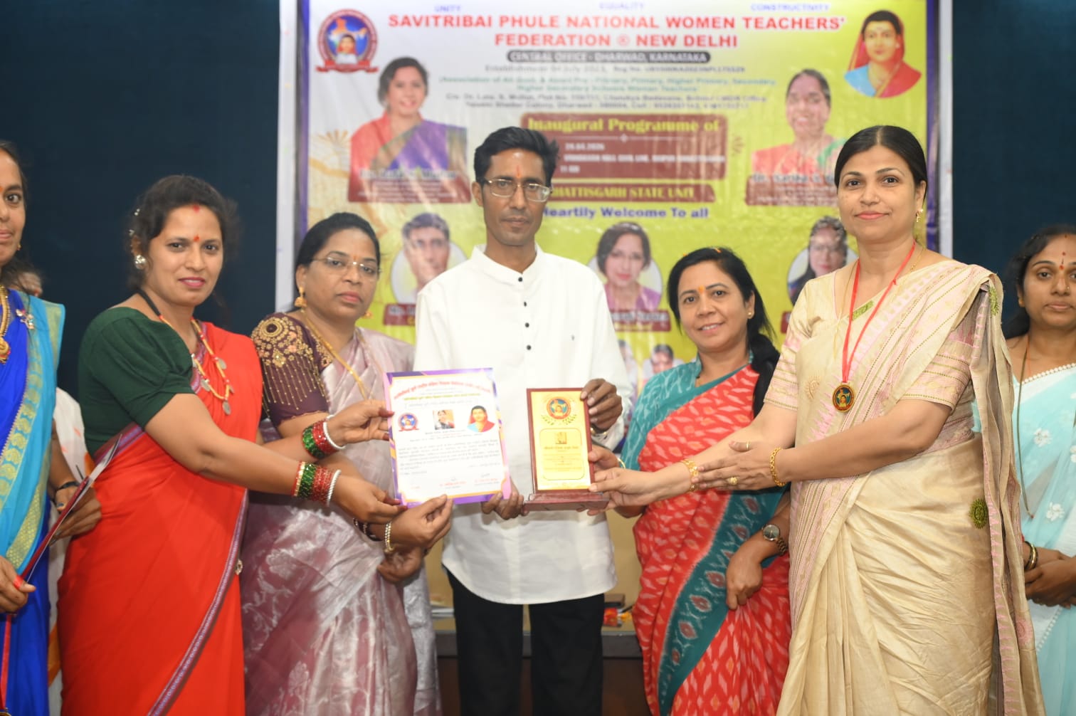 रायपुर में सावित्रीबाई फुले राष्ट्रीय महिला शिक्षक फेडरेशन (पंजी.), नई दिल्ली के तत्वावधान में आयोजित समारोह में जांजगीर-चांपा जिले के शिक्षकों को वर्ष 2026 के विभिन्न राष्ट्रीय पुरस्कारों से सम्मानित किया गया।