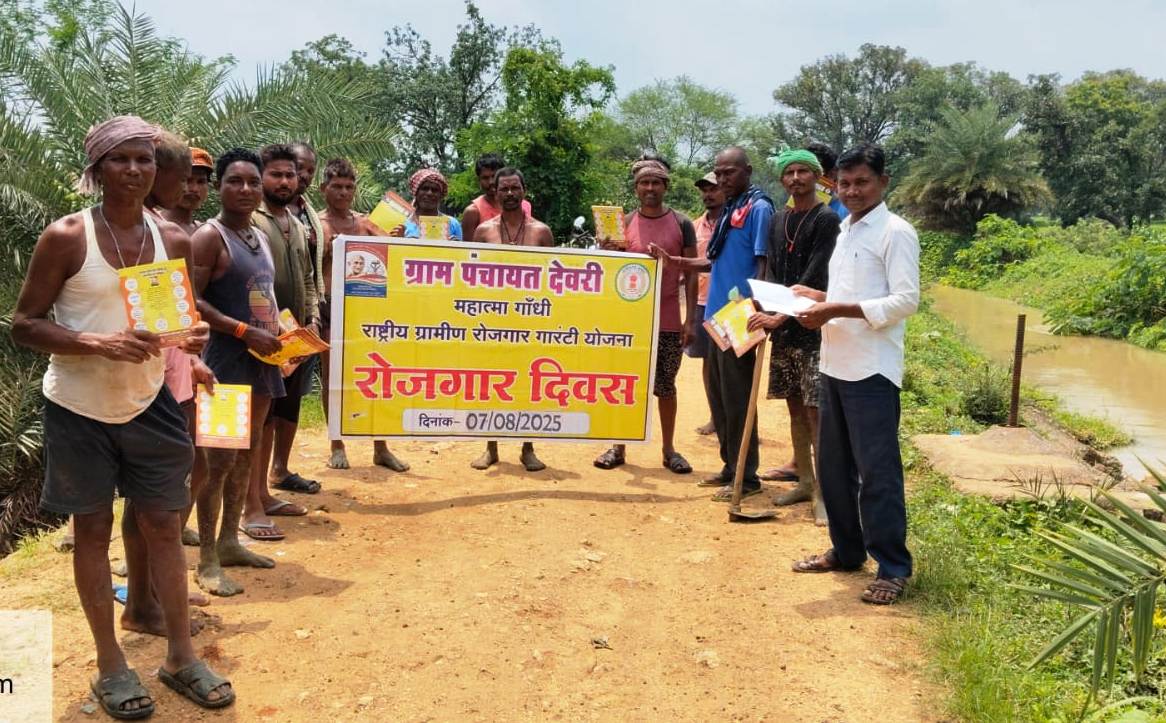 रोजगार दिवस में जल संरक्षण, अमृत सरोवर, हर घर तिरंगा, गुड गवर्नेंस एवं मनरेगा एप की ग्रामीणों को दी गई जानकारी