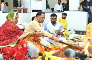 मुख्यमंत्री विष्णु देव साय ने विधि विधान के साथ पूजा अर्चना कर नवा रायपुर स्थित नए मुख्यमंत्री निवास में गृहप्रवेश किया